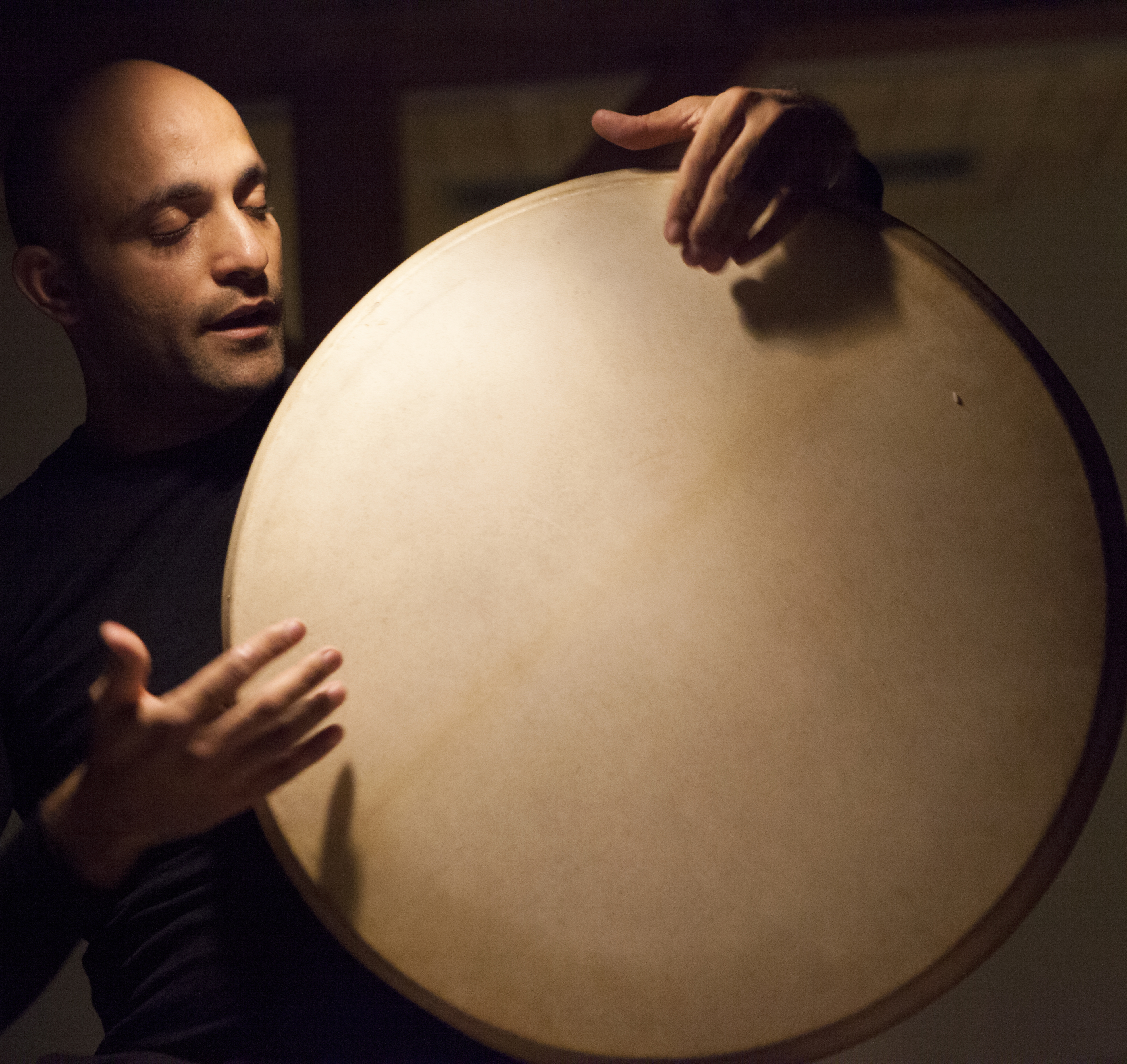 Husam is an oud player, a percussionist, songwriter and singer. Husam began his journey with music as a self-taught percussionist in 2009. In 2011, he attended classes with Hearn Gadbois in the city of Prague. As a solo singer accompanied with his frame drum he appeared at cafes and venues in Amman usually after his solo theatre performances. This was the start of his first EP Happening on this day where he collaborated with well-known musicians from Jordan: Tareq Al Jundi, Yacoub Abu Ghoush, Ahmad Barakat, Tareq Abu Kuwaik (El Far3i), Mohammad Abdallah, Derar Shawagfeh, Nasser Salamah, Alaa Takrouri and Ma’an Al sayed. The songs were modern oriental music with critical lyrics, highlighting themes such as: religious sects, poverty, authoritarian regimes and immigration. These songs were recorded especially for a satire puppet theatre performance, carrying the same album name. This successfully perceived performance was created for adults’ audiences and since its premier it had toured in Jordan for more than two years and performed over 50 times. This first experience did not let Husam find his voice fully and he went into a period of exploring and searching. This period brought him into other collaborations where he was featured by hip hop ground-breaking band: Torabya in their famous song: Ghorbah . In 2013, Husam took part at Etno Histeria festival in Slovenia which was a shift in his music career and vision. He did not hesitate to commit himself to attend classes with with frame drum master Nasser Salameh and oud masters Omar Abbad and Tareq Jundi. In 2016, Husam was featured by The Mainstream: Saga Bjorklund Jonson & Nicola Bremer at their progressive house musical Refugee Safari. Lately, in 2020 Husam collaborated with Ivana Mer and Cristian Estrella in their ^Earth^ Album.